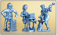 Samlare av tennfigurer, visande olika situationer ur människans arbetsliv